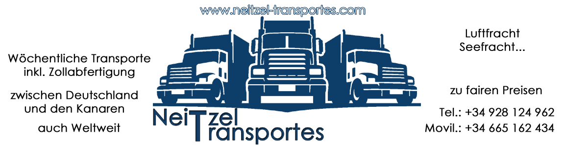 Die Umzugsfirma Neitzel ist Ihr Spezialist für Umzüge und Beiladungen von Deutschland auf die Kanaren und von den Kanaren nach Deutschland sowie internationale Transporte. Wir sprechen Deutsch, Englisch, Spanisch dadurch bieten wir Ihnen die idealen Voraussetzungen für eine sichere und kompetente Durchführung Ihres Auftrages.